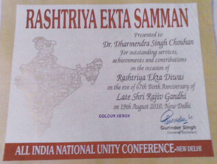 RASHTRIYA EKTA SAMMAN AWARD for outstanding Services, Achievements & Contributions