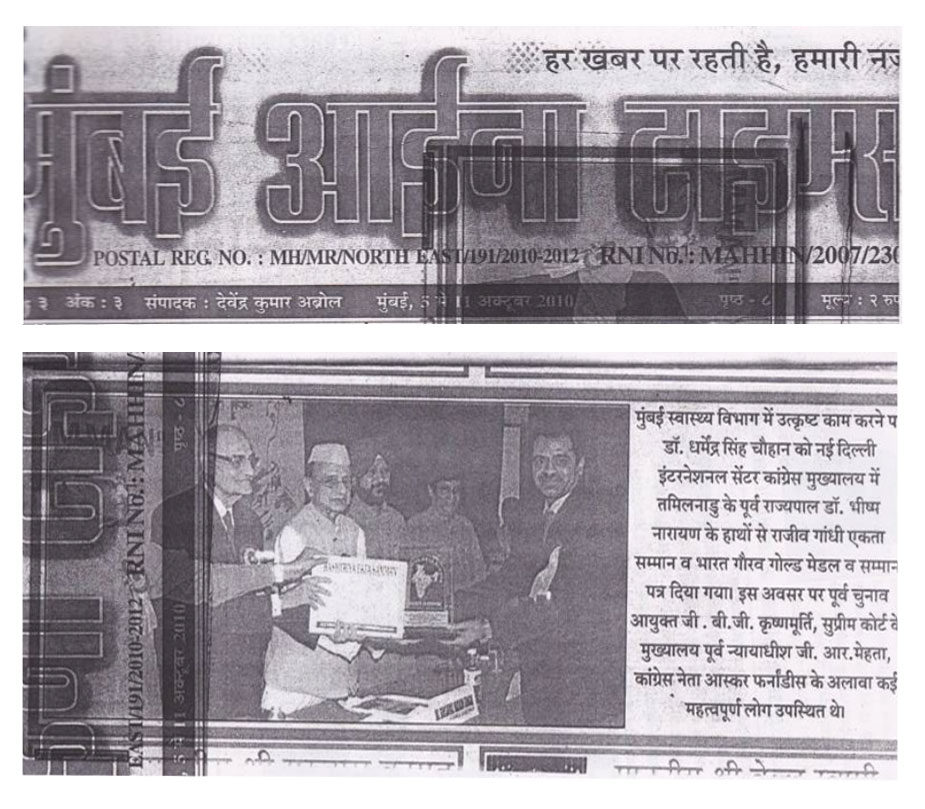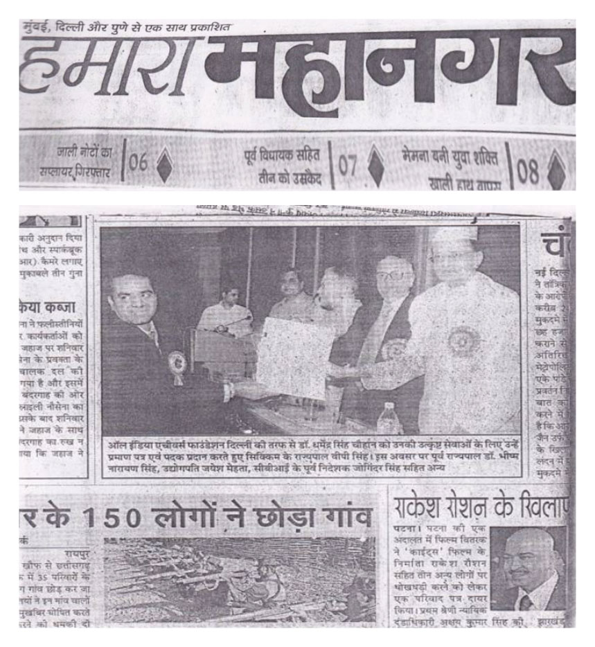 Indian Achievers Award received at New Delhi appreciated by leading Hindi newspaper, Hamara Mahanagar