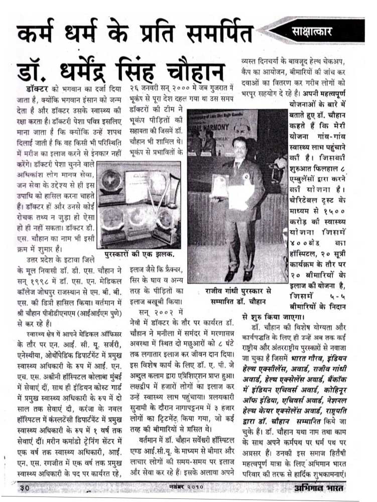 Interviewed by Abhiman Bharat magazine for achievement and being awarded by Rajeev Gandhi Award